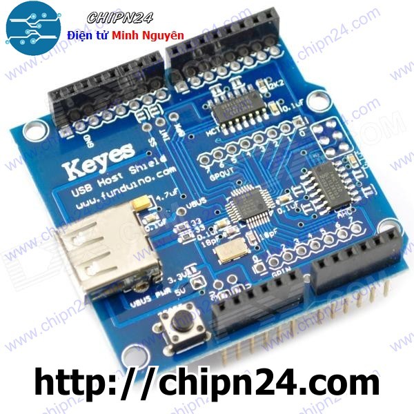 Thành phần chính tạo nên shield là chip MAX3421E - USB peripheral/ host controller hỗ trợ full-speed USB 2.0