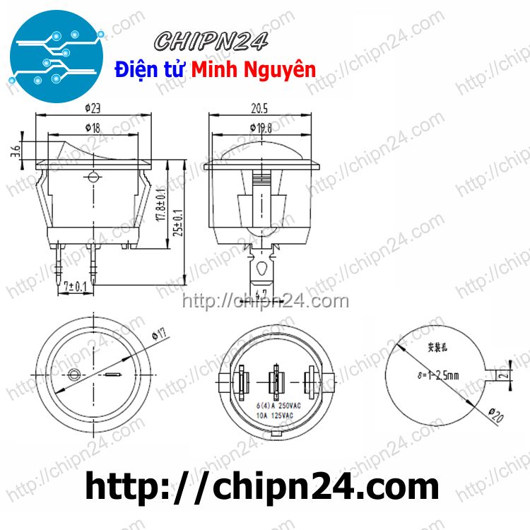 - Điện áp định mức: 250VAC