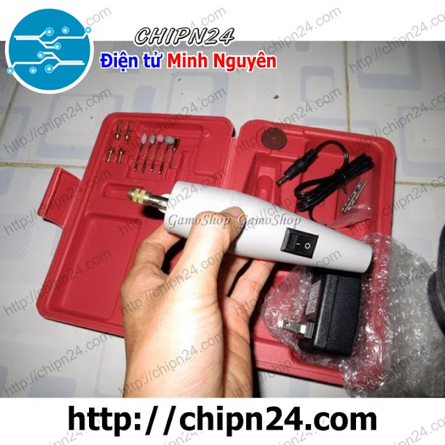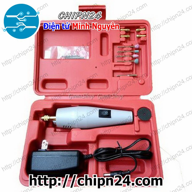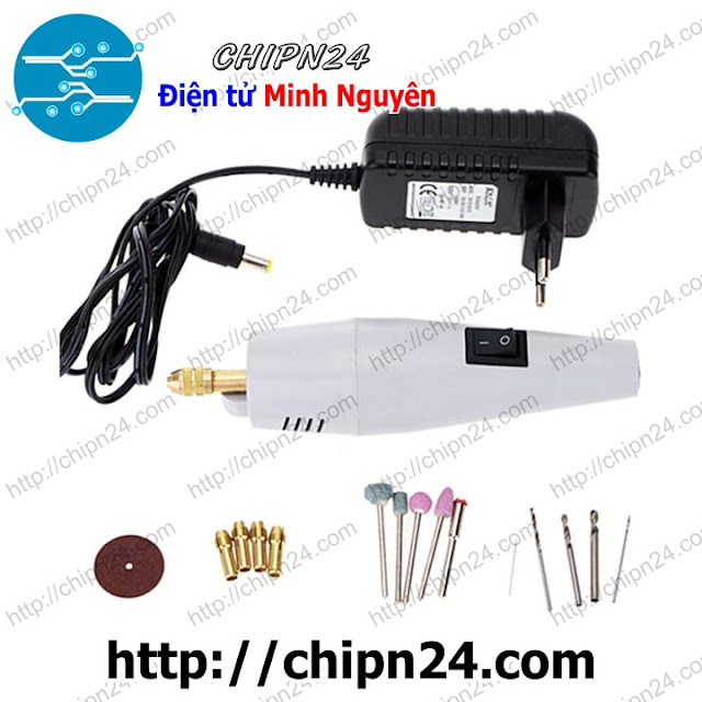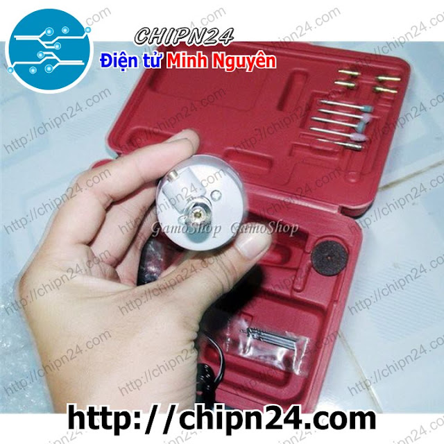 Máy khoan mài mini đa năng có kích thước nhỏ gọn, trọn bộ bao gồm nhiều phụ kiện cơ bản: