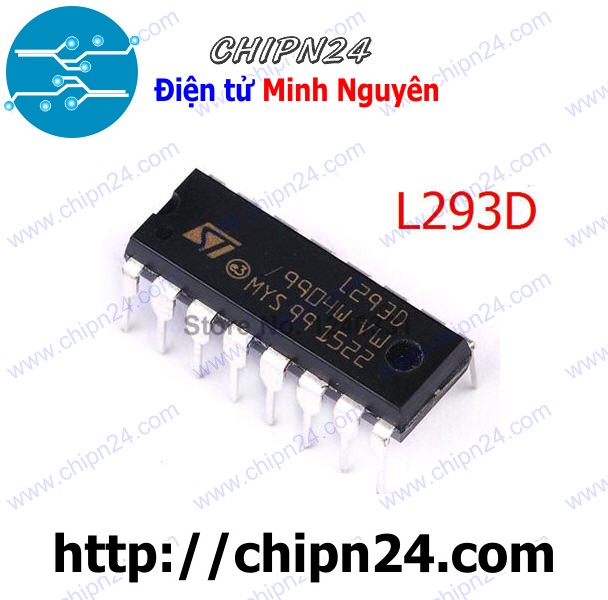 - L293D là IC cầu H điều khiển động cơ. Gồm 4 kênh điều khiển có thể điều khiển 2 động cơ DC hoặc 1 động cơ bước 4 pha (5 dây). Để điều khiển động cơ DC, bạn sẽ sử dụng 2 kênh của L293D cho 1 động cơ.