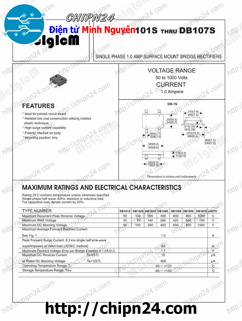 - Diode cầu chỉnh lưu gồm 4 diode đơn mắc thành cầu chỉnh lưu được đóng gói trong một vỏ riêng biệt.