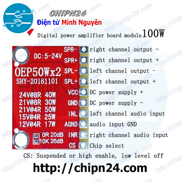 - Sử dụng chip khuếch đại: TPA3116D2 (chân dán)