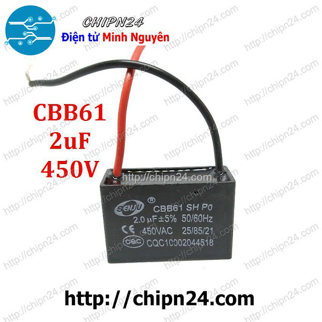 - Tụ CBB61 450V là sản phẩm tụ thông dụng nhất trên thị trường dùng để thay thế tụ quạt thiết kế chống cháy nổ.