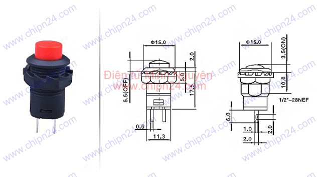 - Nút nhấn tự giữ 12mm màu xanh lá, nhấn xuống đóng mạch kín, thả tay ra vẫn ở trạng thái đóng mạch. Nhấn lần nữa nút trở về trạng thái hở mạch. Thích hợp làm mô hình, đồ án , chế tạo, công nghiệp , ...
