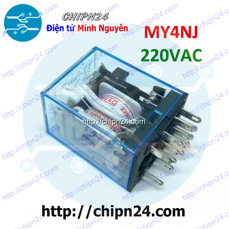 - Relay Omron MY4NJ 220VAC 5A 14 chân được cấu tạo từ nam châm từ và hệ thống các tiếp điểm đóng cắt, với thiết kế nhỏ gọn, module hóa, dễ dàng lắp đặt và thay thế.